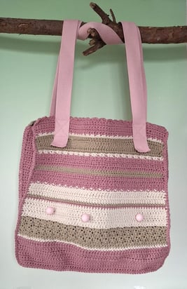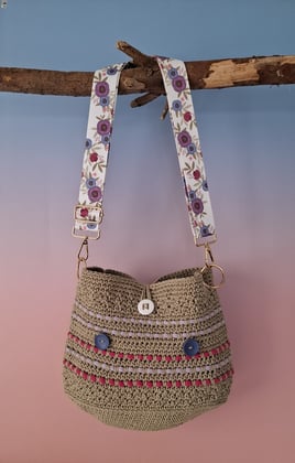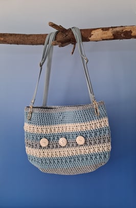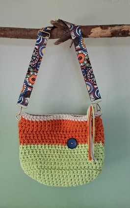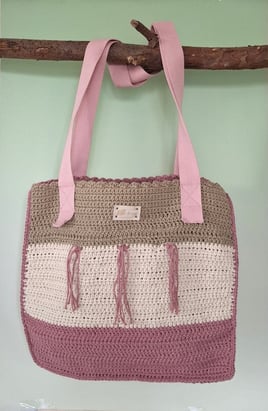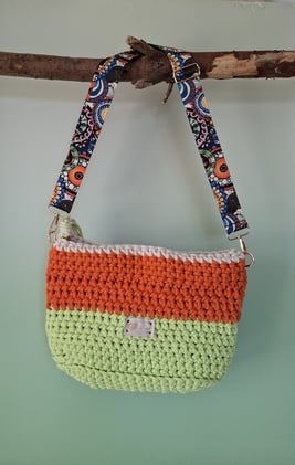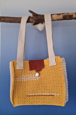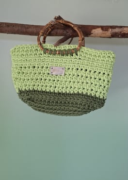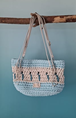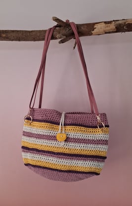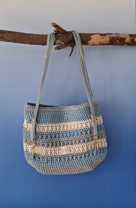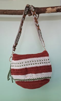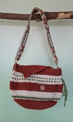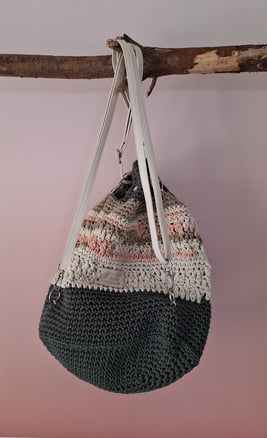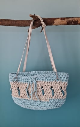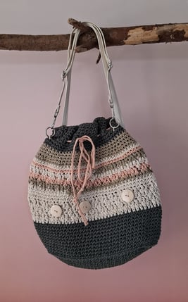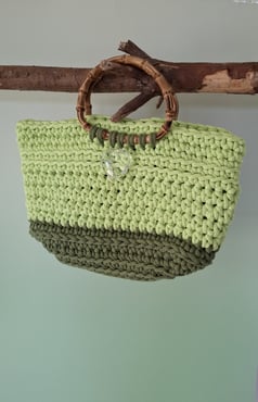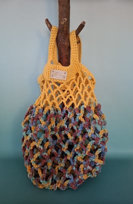 Alle Taschen sind aus rezyklierter Baumwolle gehäckelt